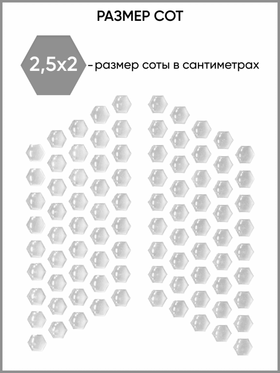 Размеры одной соты: длина - 2,5 см, ширина - 2 см.