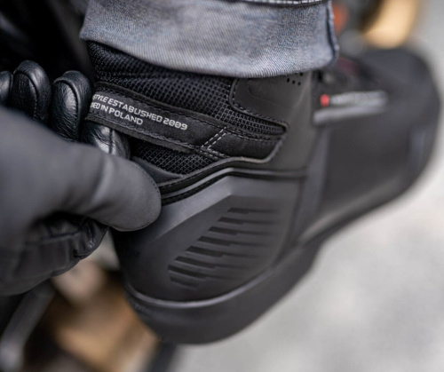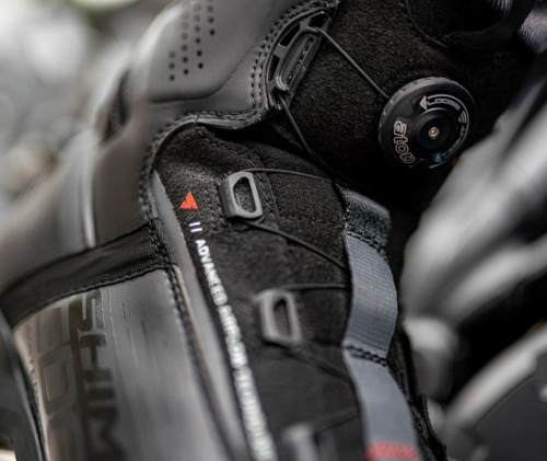 Для еще большего комфорта EDGE WP оснащен специальной косынкой, позволяющей легко найти правильное положение ноги на подножке, и прорезиненной накладкой.