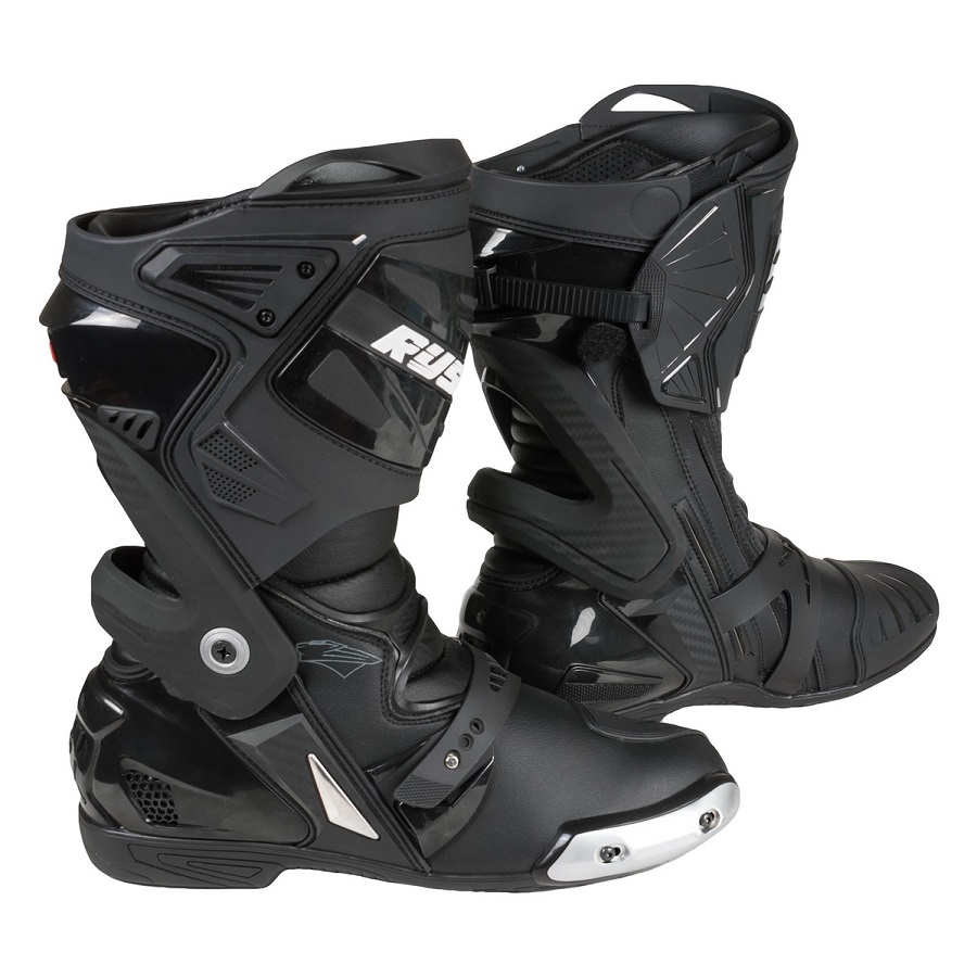 Высококлассные спортивные мотоботы RUSH STEP - UP — подойдут как для выездов на трек, так и для использования в городе. Все части ноги, от голени до кончиков пальцев надежно защищены целым комплексом протекторов из термополиуретана. Наиболее важные эластичные элементы ботинок выполнены из прочной и устойчивой к истиранию микрофибры, а в качестве защиты используются большие полиуретановые ударопоглащающие вставки, защищающие пятку и голень, спереди и сзади. Гофрированный подъем и задняя гофрированная часть обеспечивают превосходную гибкость. Шарнир защиты выполнен из термопластика и надежно защищает голеностоп от скручивания, при этом, не вызывает затруднений при ходьбе. Защита пятки цельнолитая, что позволяет эффективно гасить энергию удара. Резиновая противоскользящая подошва абсорбирует вибрации. Каблук четко выражен, что дает надежный и четкий зацеп за подножку. Подъем стопы регулируется эластичным резиновым ремнем. Молния находится с внутренней стороны ботинка, и закрывается поверх клапаном на липучке. Защитный кожух плотно облегает икру и имеет надежную пластиковую застежку. На регулярный контакт с асфальтом рассчитаны сменные двухслойные слайдеры. Каналы вентиляции в задней части ботинка обеспечивают естественную вентиляцию, а специальный состав кожи способен противостоять дождю средней интенсивности длительное время. При выборе размера рекомендуем брать размер на один больше вашего — это «маломерки».- Применение микрофибры и рециклированной кожи вместе с новейшими технологиями обеспечивает устойчивость как к истиранию, так и к различным погодным условиям;
