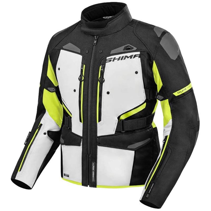 SHIMA DUNE — туристическая мотокуртка, сочетающая безопасность и комфорт с практичными решениями. Водонепроницаемые накладные карманы спереди и накладной карман сзади обеспечат достаточно места для всех необходимых вещей. Система Night Vision™ с большим количеством светоотражателей на передней и задней части куртки повышает видимость и безопасность на дороге. Дополнительный внутренний водонепроницаемый карман защищает ценные вещи от влаги. Кнопки для дополнительного воротника (приобретаются отдельно) позволяют быстро подогнать куртку под различные погодные условия.